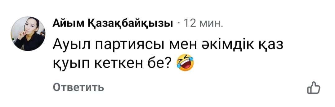 Десе де әлеуметтік желі қолданушылары бұл ақпаратқа күле қарағанға ұқсайды. Мәселен, Айым Қазақбайқызы есімді facebook қолданушы «Ауыл» партиясы мен әкімдік «қаз қуып кеткен бе» деп жазған.