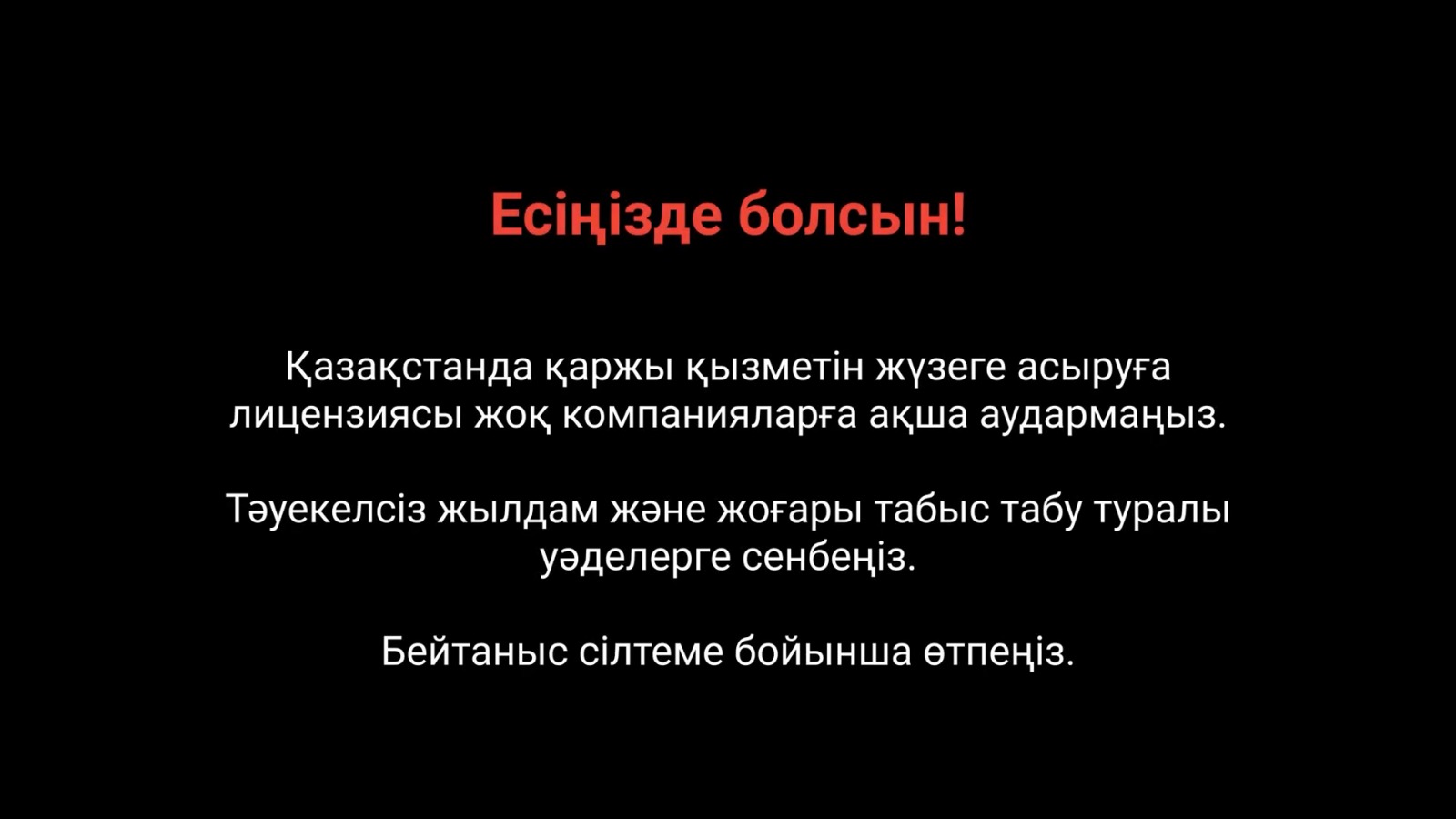 Еске салайық, адамдар алдауға түспеуі үшін Kaspi.kz Қаржы нарығын реттеу және дамыту агенттігінің қолдауымен ең көп тараған алаяқтық түрлері туралы бейнежобалар сериясын түсірді. Жаңа видеолар әр екі апта сайын Kaspi.kz-тің ресми YouTube-арнасында жарияланады.