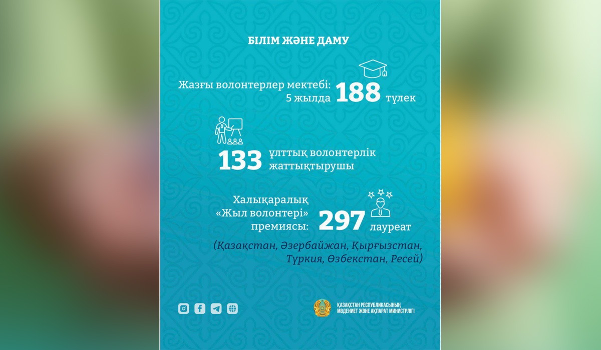 Барлық волонтерге еліміздің дамуына қосқан үлесі, табандылығы, мейірімділігі мен өз ісіне адалдығы үшін шын жүректен алғыс айтамын. Сіздердің игі істеріңіз әрқашан құрмет пен қолдау тауып, адамдарға қуаныш пен шаттық әкелсін, – деді министр.