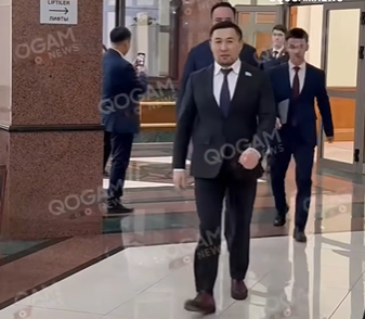 Парламент ғимаратында алшаң басып келе жатқан оның видеосынан депутаттың шалбарының қысқа екенін көруге болады.