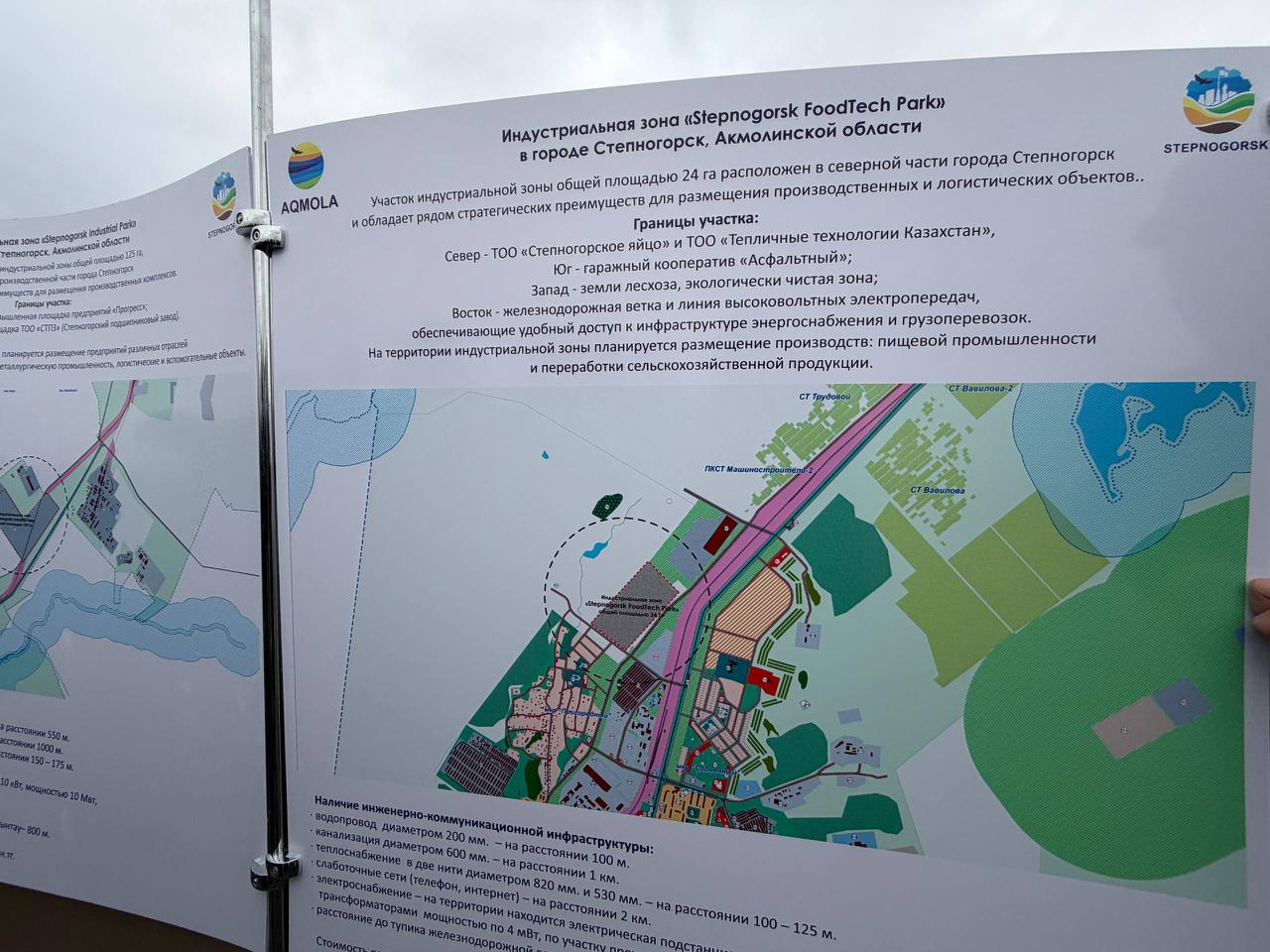 Өңір әкімі Степногорск қаласының өнеркәсіптік бөлігінде орналасатын болашақ индустриялық аймақтың аумағын аралап көрді. Бұл территория инженерлік желілерге, жылу және сумен қамту жүйелеріне қосылу мүмкіндігі бар инфрақұрылымдық жағынан дайын. Теміржол тармағына және автожолға жақын орналасуы кәсіпкерлер үшін логистикалық мүмкіндіктерді кеңейтеді.